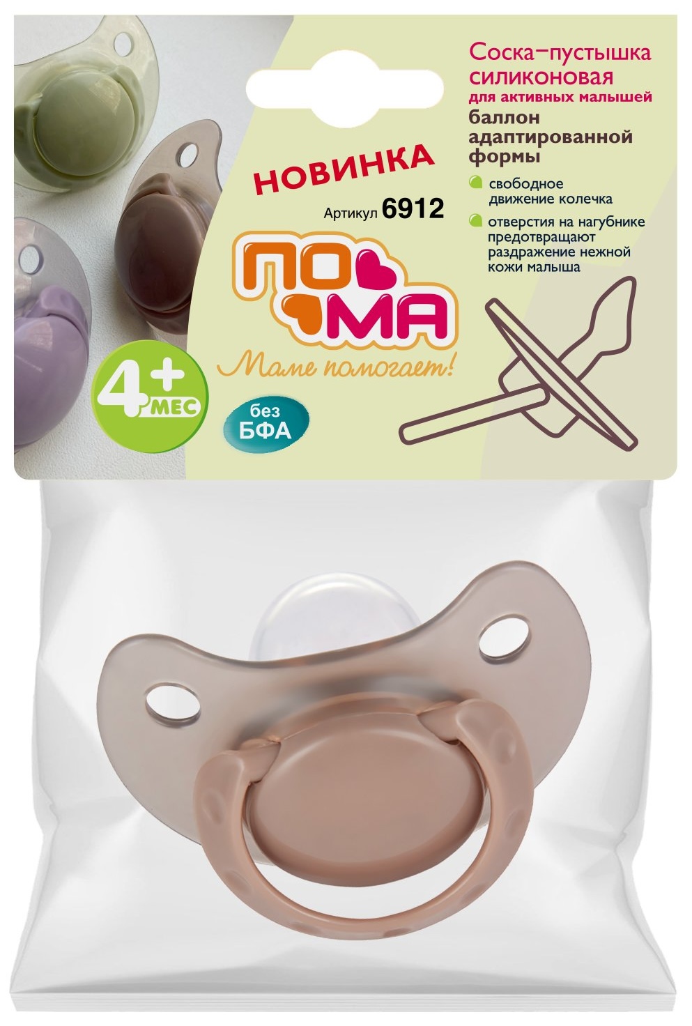 Купите ПОМА 6912 Соска-пустышка силиконовая адаптированной формы, 1 шт. (ПП, силикон) 4+ в аптеках Астана, Алматы, Кокшетау, Шымкент, Тараз, Кызылорда, Туркестан, отправьте чек и получите бонус 10%.